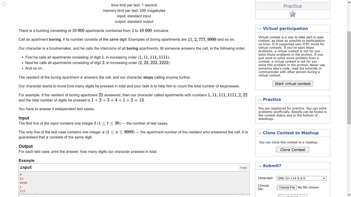 Let us take a simple problem from Codeforces —